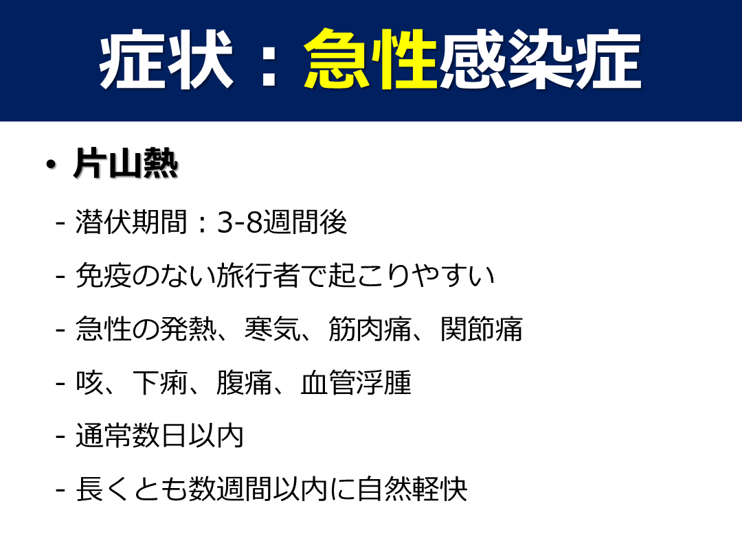 #280. 症状:急性感染症 通常無症状(寄生虫の侵入は気づかれないことがほとんど)