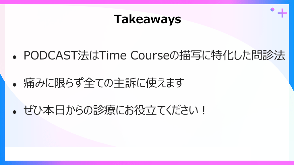 #16. Takeaways PODCAST法はTime Courseの描写に特化した問診法