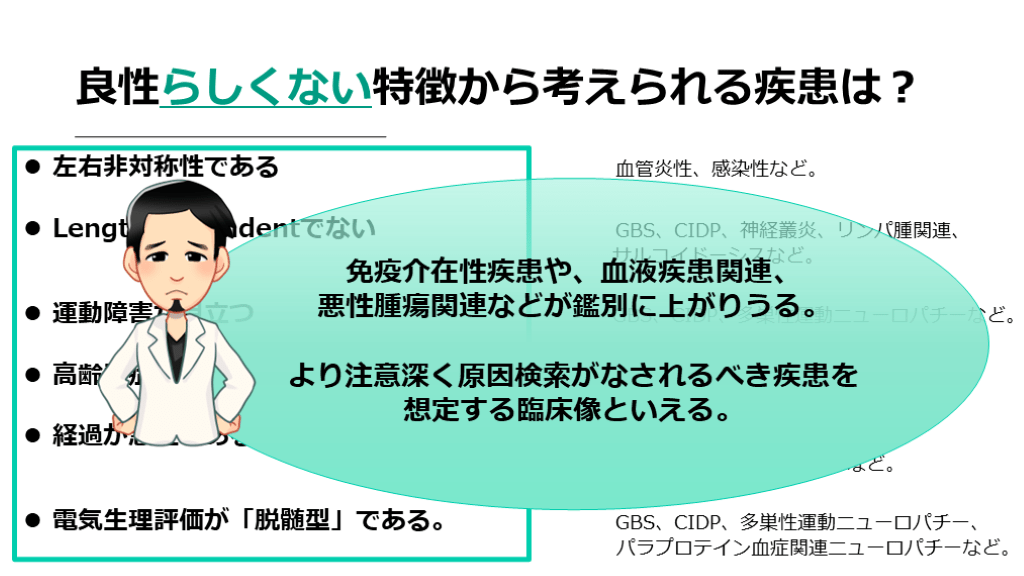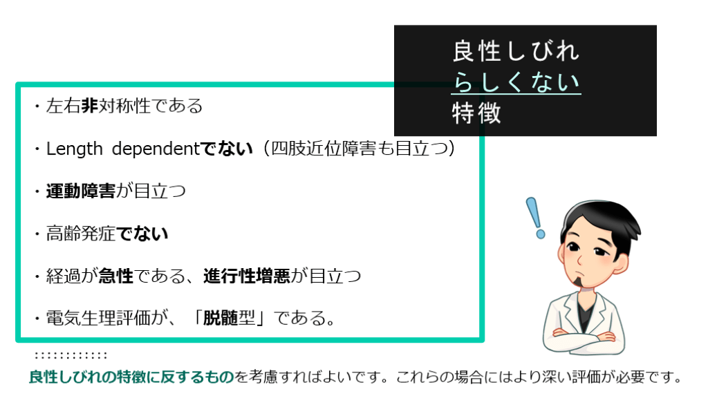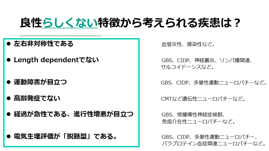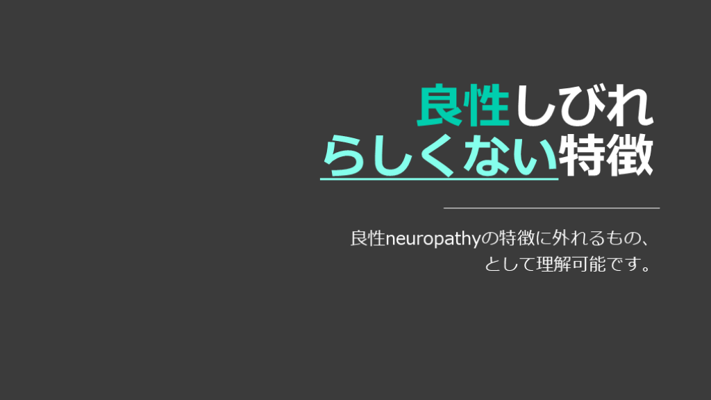 らしくない特徴 良性neuropathyの特徴に外れるもの、