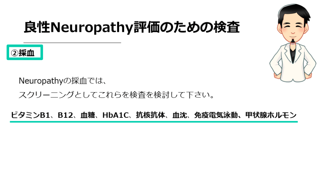 #14. 検査について 末梢神経伝導検査、採血検査。