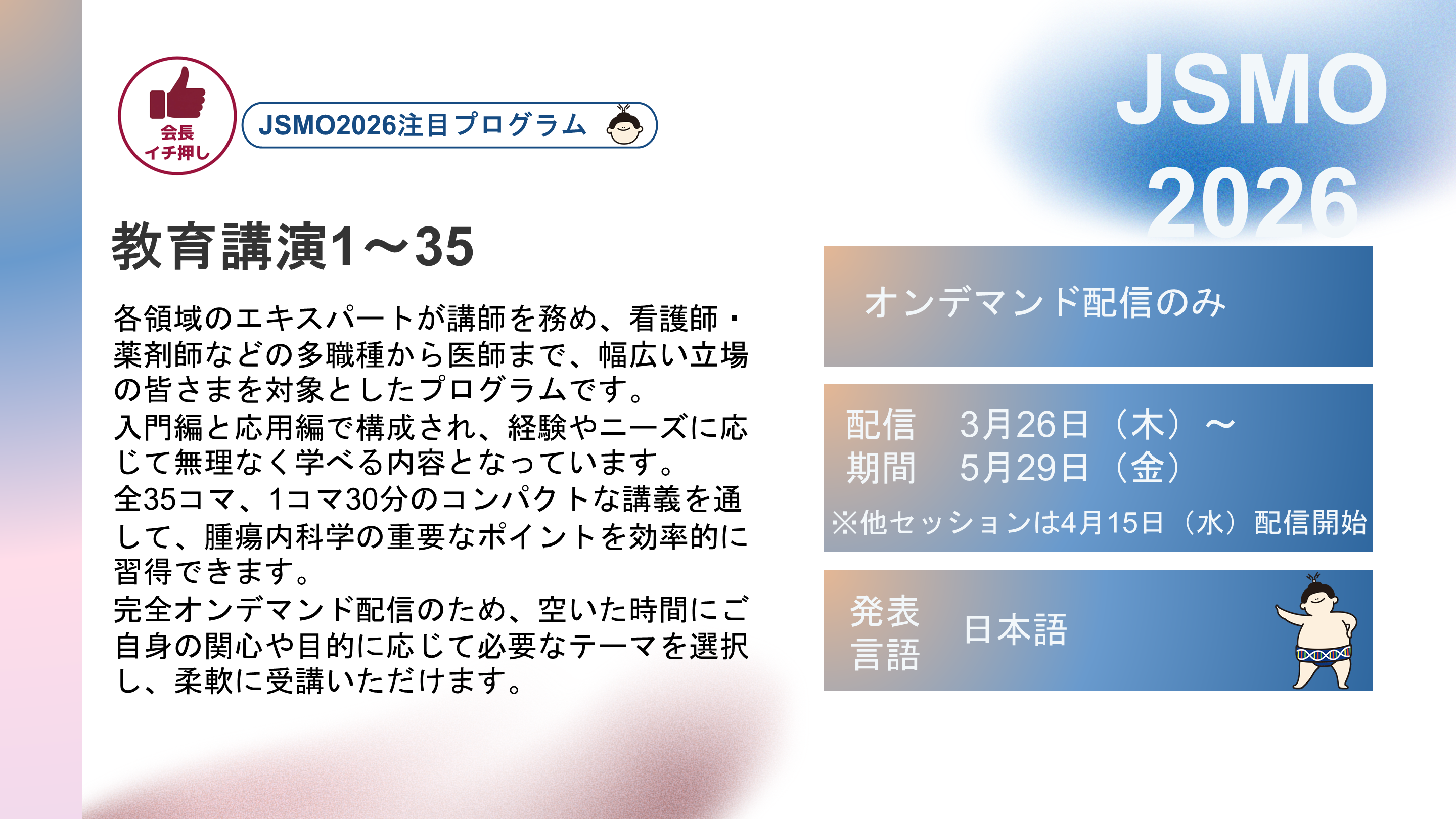 JSMO2026 注目プログラム紹介⑥ 「教育講演」