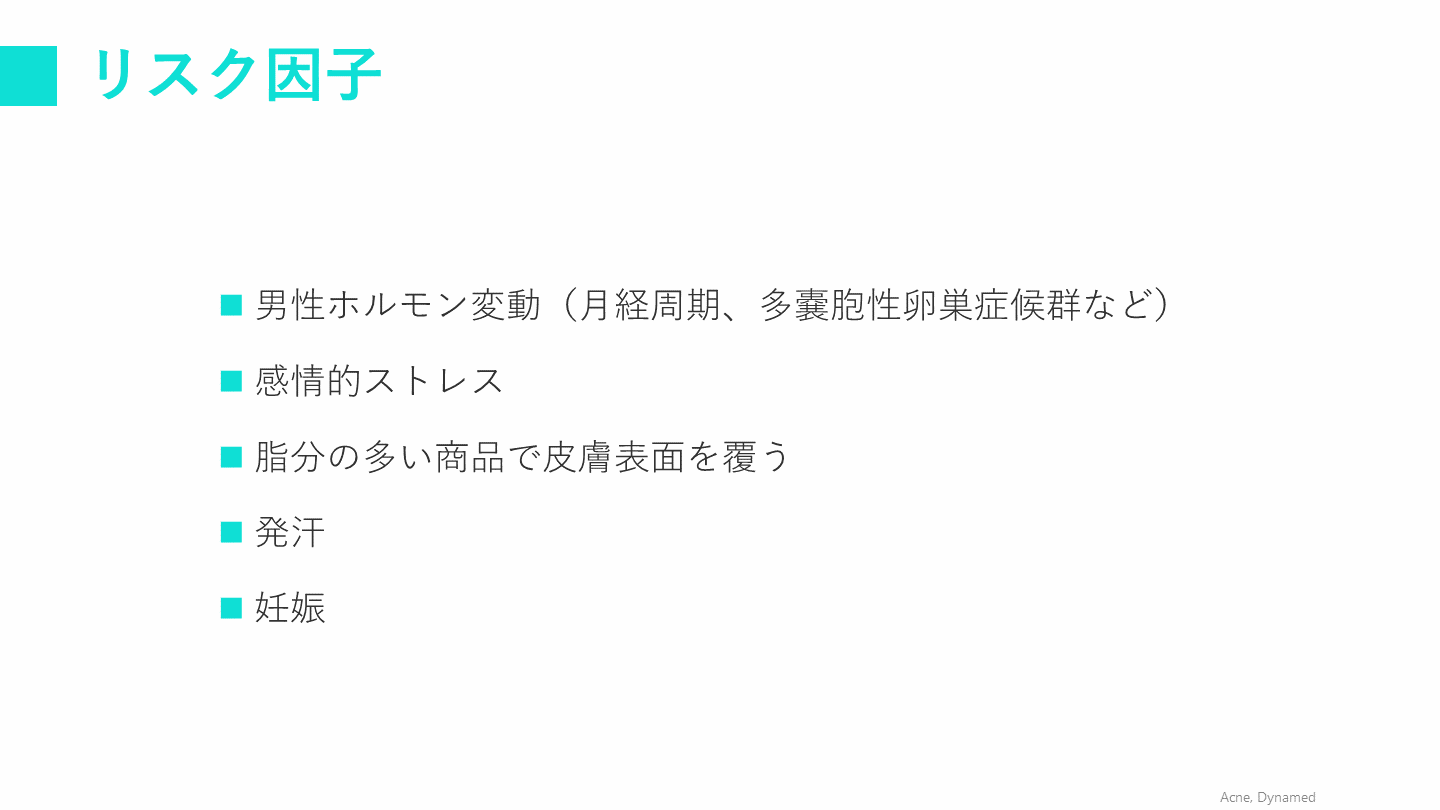 #9. リスク因子 Acne, Dynamed 男性ホルモン変動(月経周期、多嚢胞性卵巣症候群など)