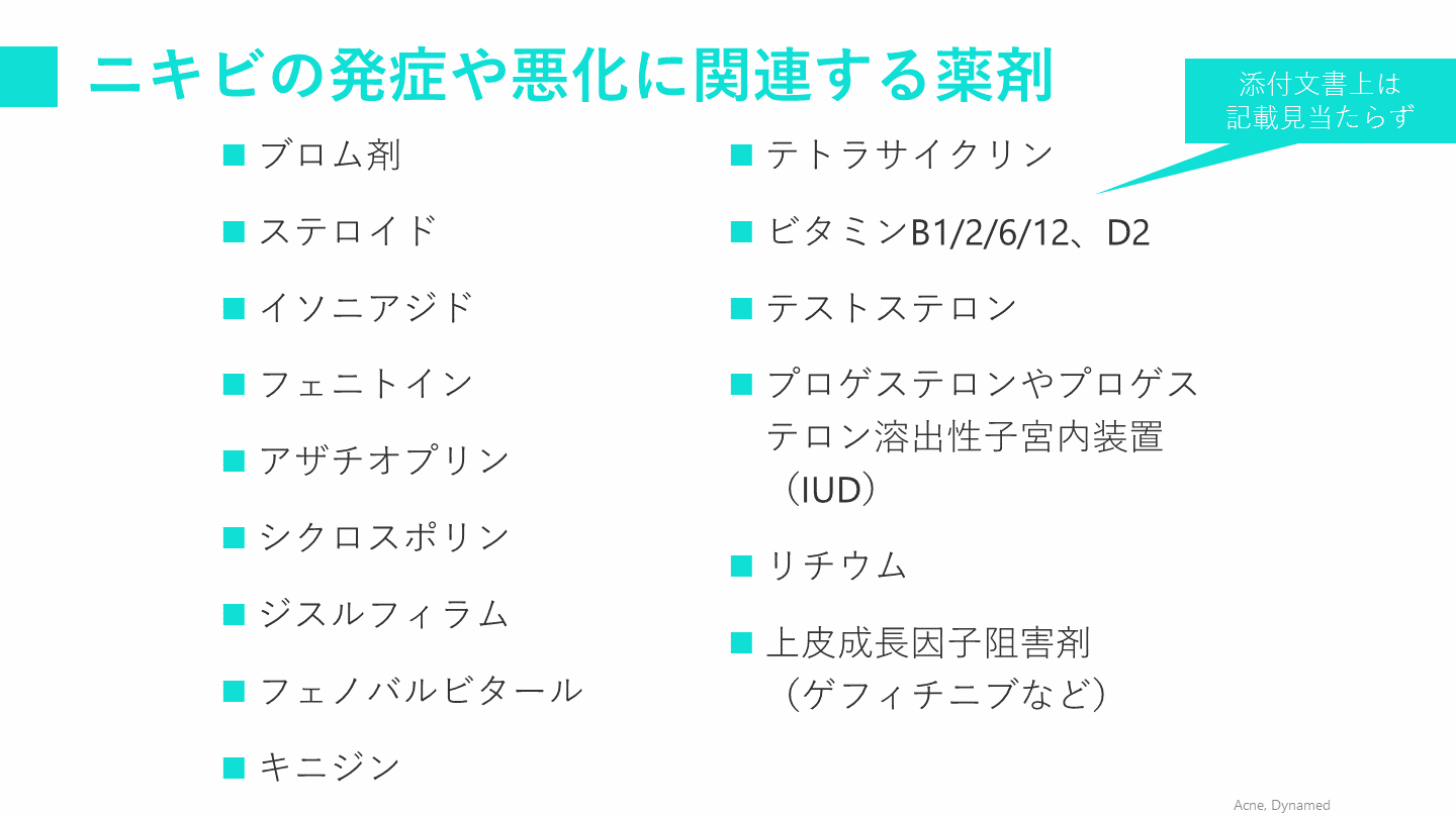 #10. ニキビの発症や悪化に関連する薬剤 Acne, Dynamed ブロム剤