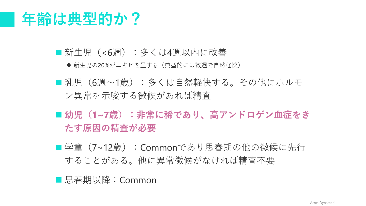 #12. 年齢は典型的か? Acne, Dynamed 新生児(<6週):多くは4週以内に改善