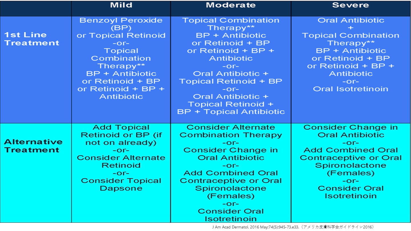 痤瘡, 今日の臨床サポート アメリカ皮膚科学会ではテトラサイクリン系を第一選択としている