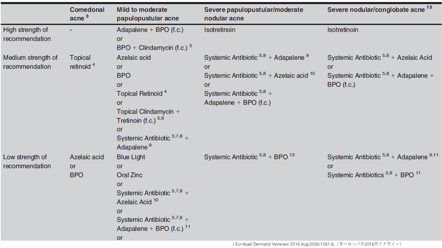 基本的にアダパレンをいつも処方してたけど、意外と各種ガイドラインの扱いは過酸化ベンゾイルとさほど優劣をつけてない