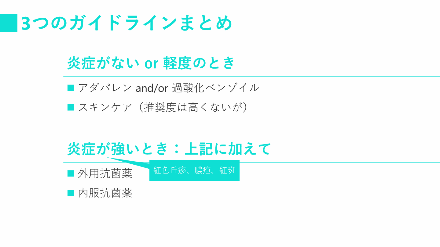 #19. 3つのガイドラインまとめ アダパレン and/or 過酸化ベンゾイル