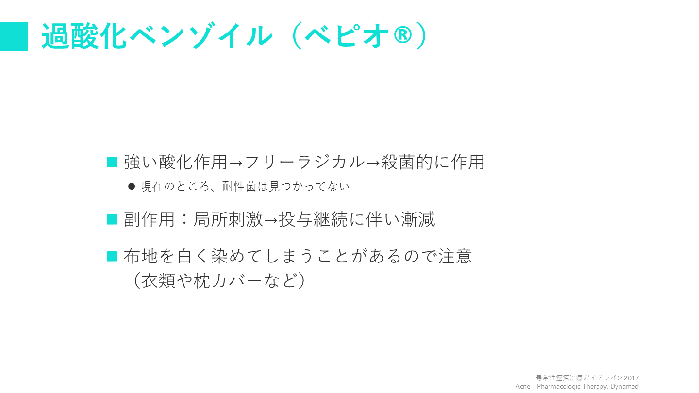 Acne - Pharmacologic Therapy, Dynamed 強い酸化作用→フリーラジカル→殺菌的に作用