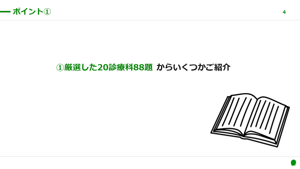 #4. ①厳選した20診療科88題 からいくつかご紹介 ポイント① 4