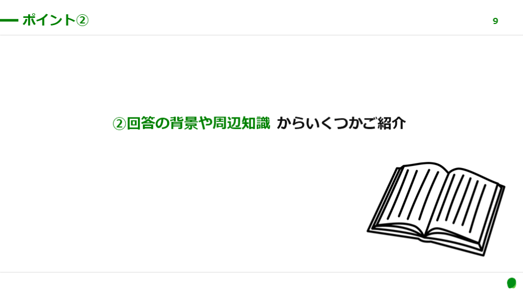 #9. ②回答の背景や周辺知識 からいくつかご紹介 ポイント② 9