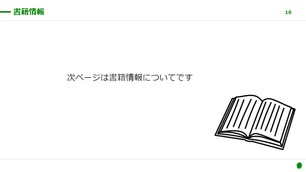 #16. 次ページは書籍情報についてです 書籍情報 16