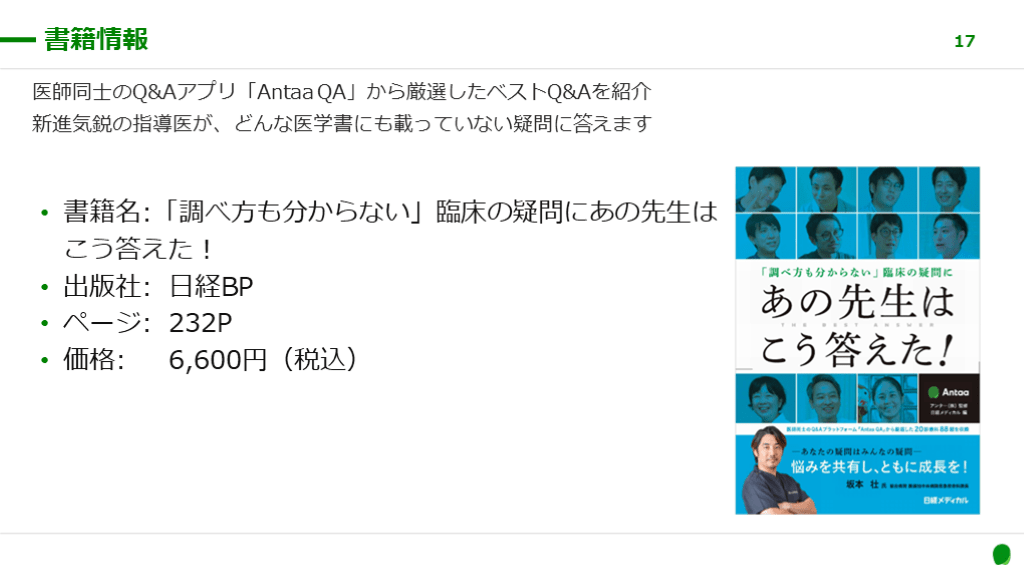あの先生はこう答えた! 発行:日経メディカル 【一部公開】 Antaa QAの書籍