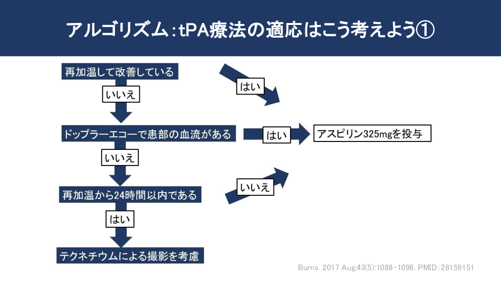 #15. アルゴリズム:tPA療法の適応はこう考えよう① Burns. 2017 Aug;43(5):1088-1096. PMID:28159151