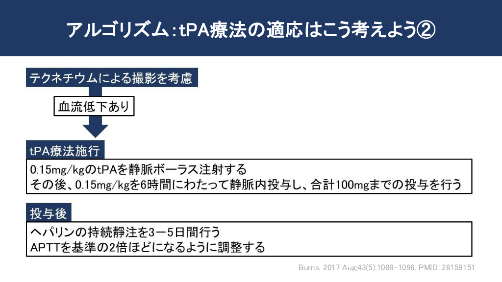 #16. アルゴリズム:tPA療法の適応はこう考えよう② Burns. 2017 Aug;43(5):1088-1096. PMID:28159151