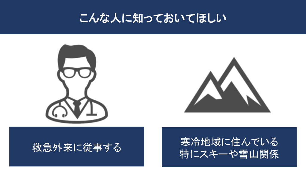 #2. こんな人に知っておいてほしい 救急外来に従事する 寒冷地域に住んでいる 特にスキーや雪山関係