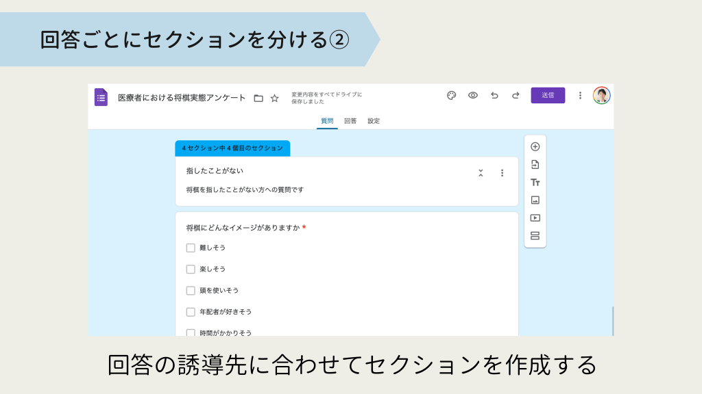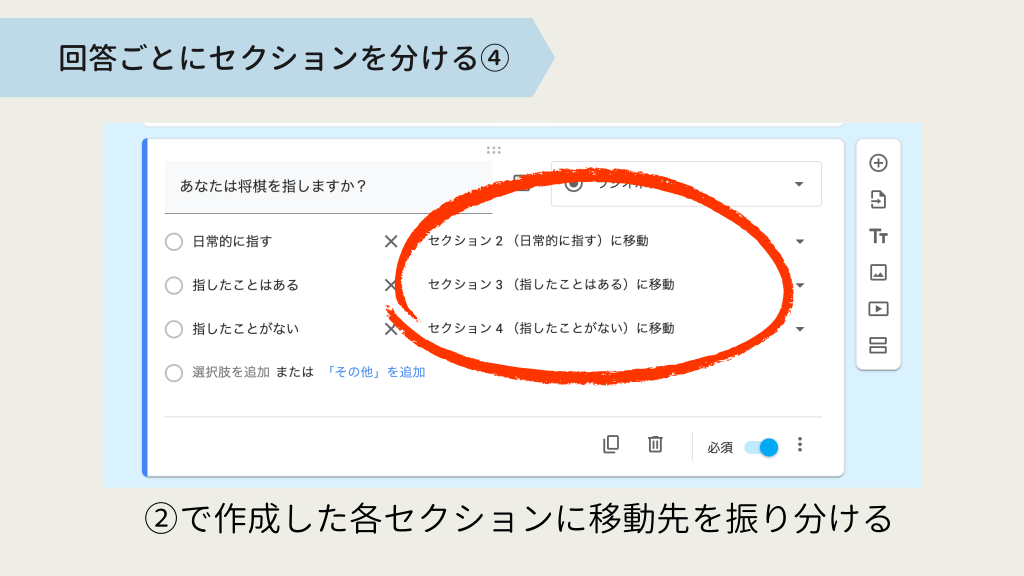 #7. 回答ごとにセクションを分ける② 回答の誘導先に合わせてセクションを作成する