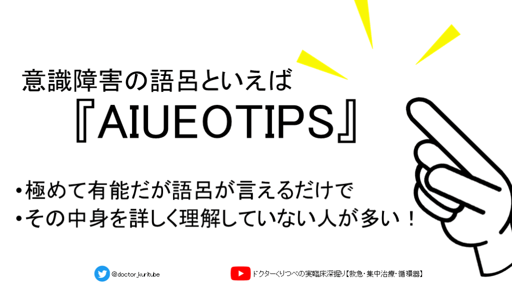 #2. 意識障害の語呂といえば 『AIUEOTIPS』 極めて有能だが語呂が言えるだけで