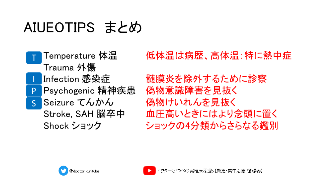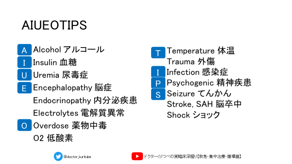 #1. 意識障害の鑑別〜AIUEOTIPSを深掘りする〜 ドクターくりつべ@Youtube