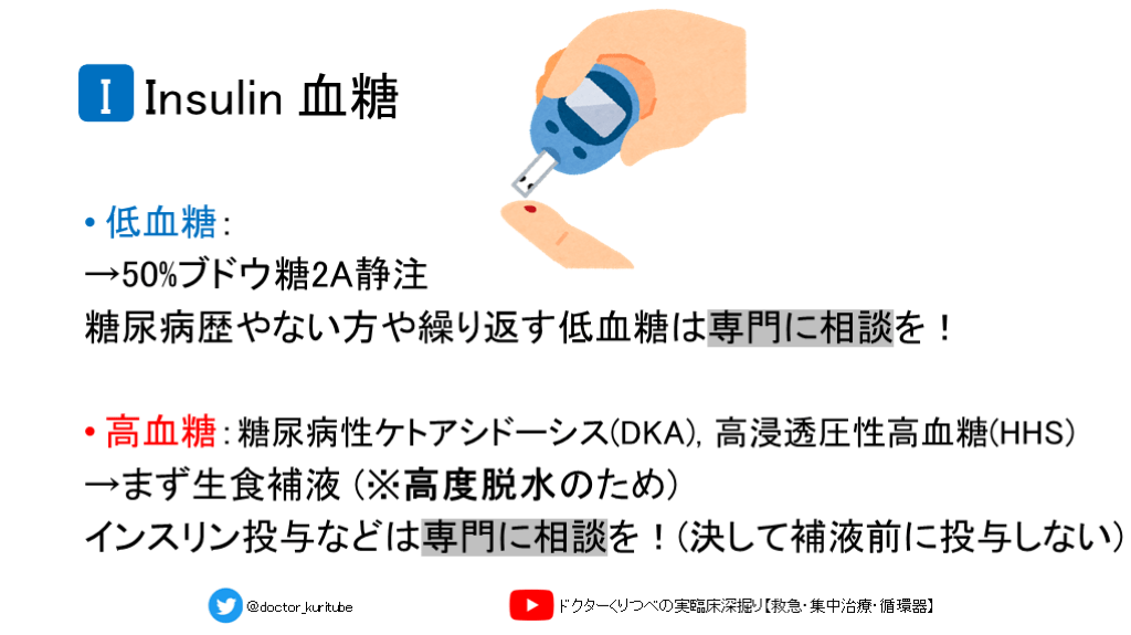 インスリン投与などは専門に相談を!(決して補液前に投与しない)