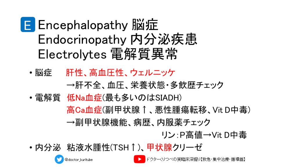 Encephalopathy 脳症 Endocrinopathy 内分泌疾患Electrolytes 電解質異常 E