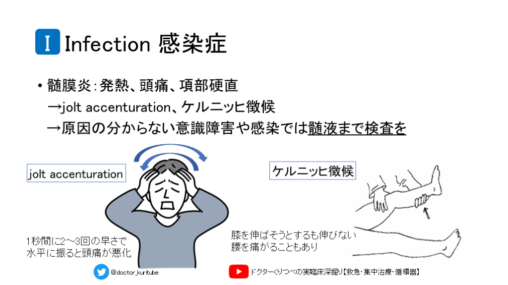 ケルニッヒ徴候 jolt accenturation 膝を伸ばそうとするも伸びない