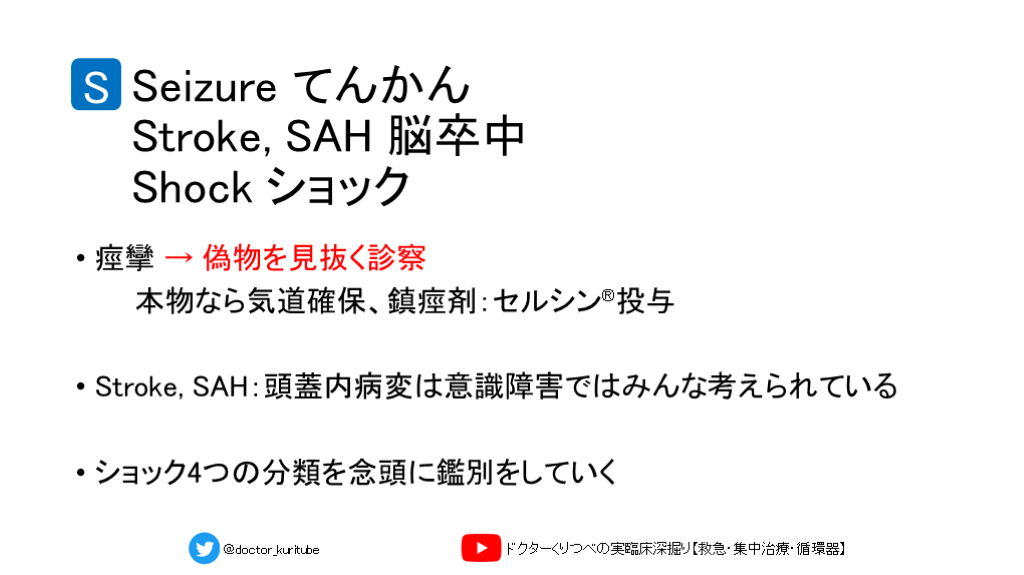 #17. Seizure てんかんStroke, SAH 脳卒中Shock ショック S 痙攣 → 偽物を見抜く診察