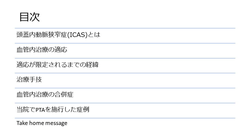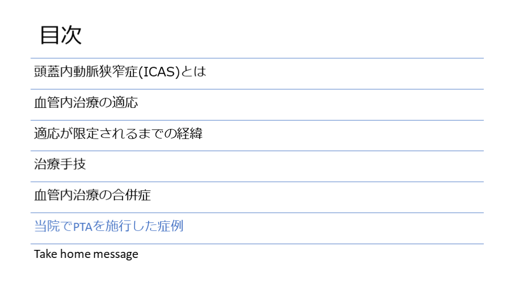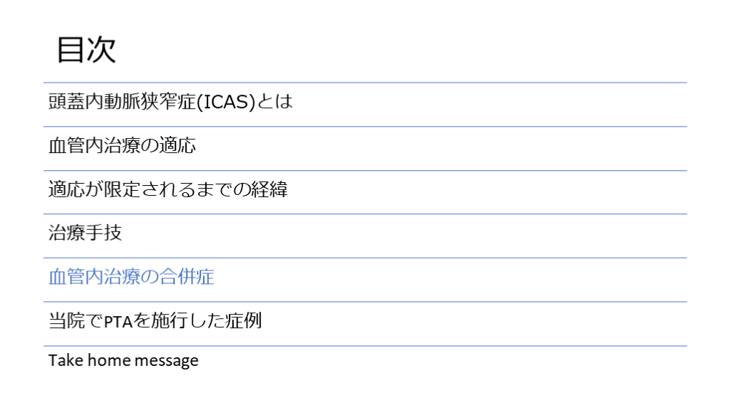 #39. Take home message ・頭蓋内動脈狭窄症に対し経皮的血管形成術(PTA)、