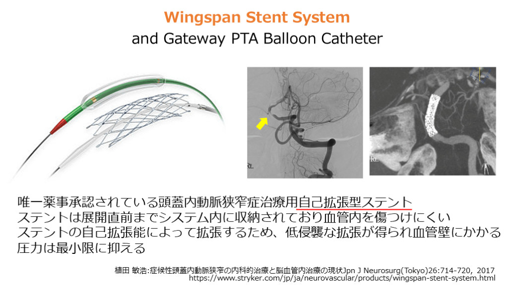 頭蓋内動脈高度狭窄症例に対し内科的治療には限界がある Wingspan Stent Systemが開発された