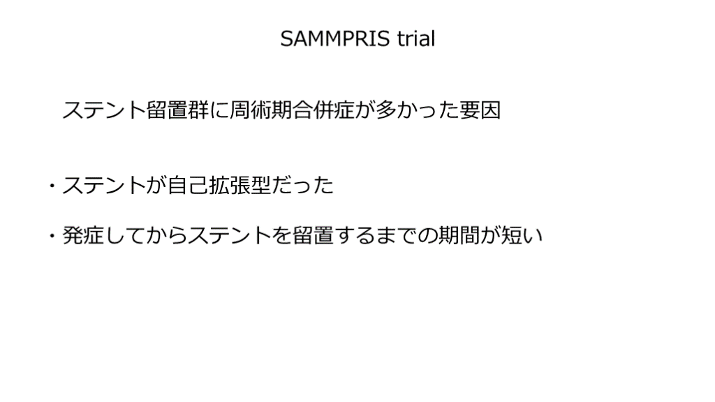 →自己拡張型ステント、バルーン拡張型ステントのいずれも内科治療のみの症例より 予後が悪かった