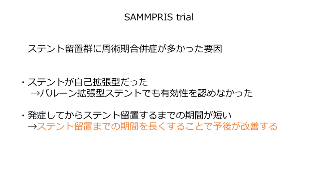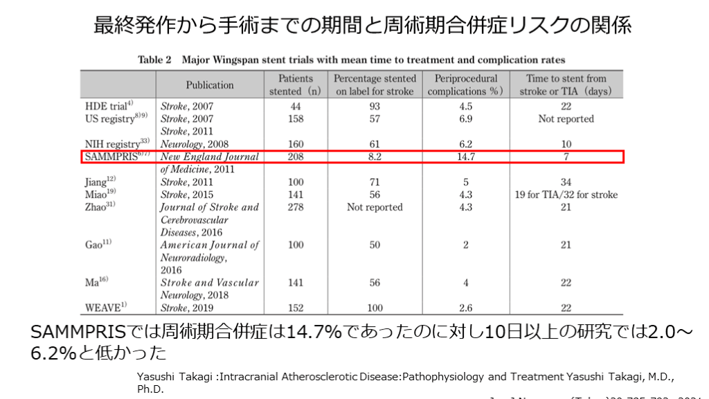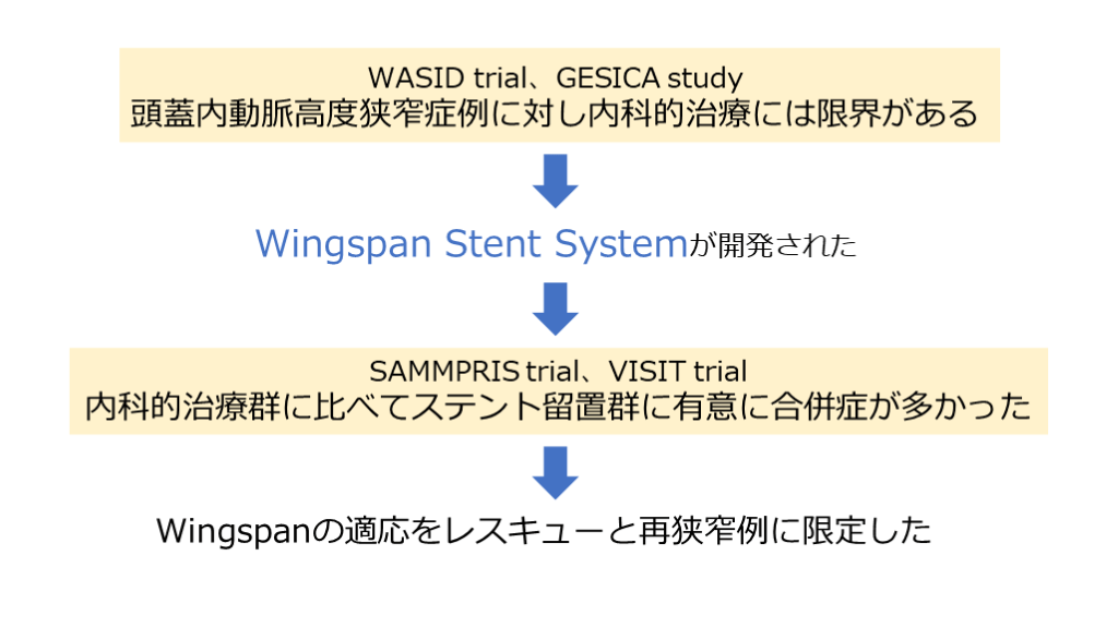 頭蓋内動脈高度狭窄症例に対し内科的治療には限界がある Wingspan Stent Systemが開発された SAMMPRIS trial、VISIT trial