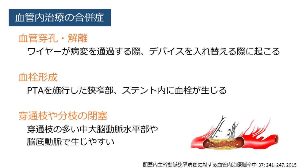 脳底動脈で生じやすい 血管内治療の合併症 頭蓋内主幹動脈狭窄病変に対する血管内治療脳卒中 37: 241–247, 2015