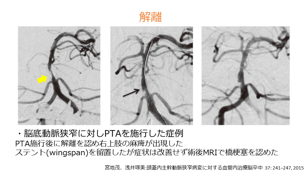 #25. 解離 宮地茂、浅井琢美:頭蓋内主幹動脈狭窄病変に対する血管内治療脳卒中 37: 241–247, 2015 ・脳底動脈狭窄に対しPTAを施行した症例