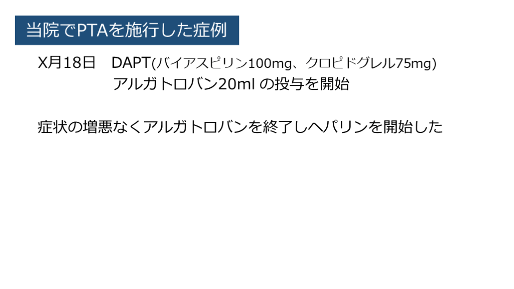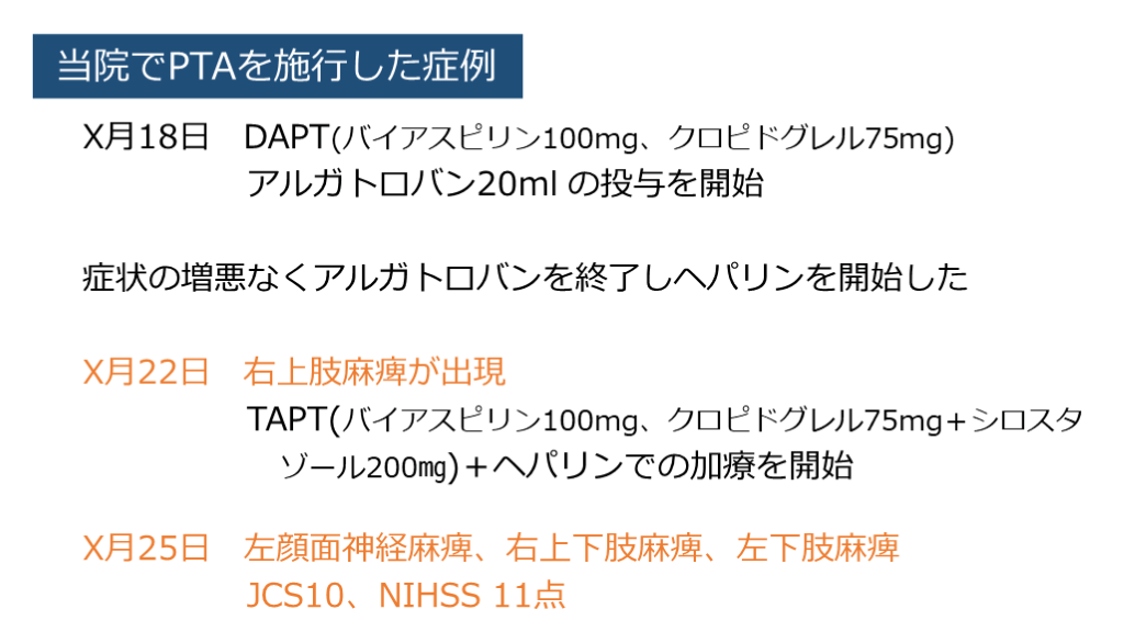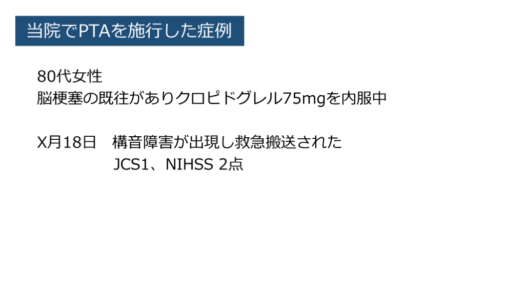 JCS10、NIHSS 11点 当院でPTAを施行した症例