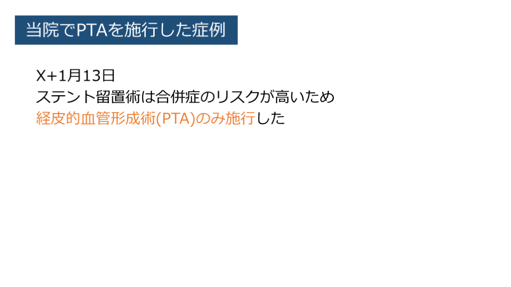 経皮的血管形成術(PTA)、ステント留置術を検討する