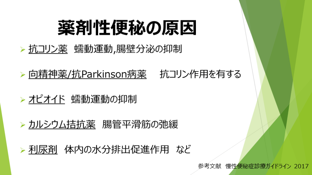 #7. 薬剤性便秘の原因 抗コリン薬 蠕動運動,腸壁分泌の抑制