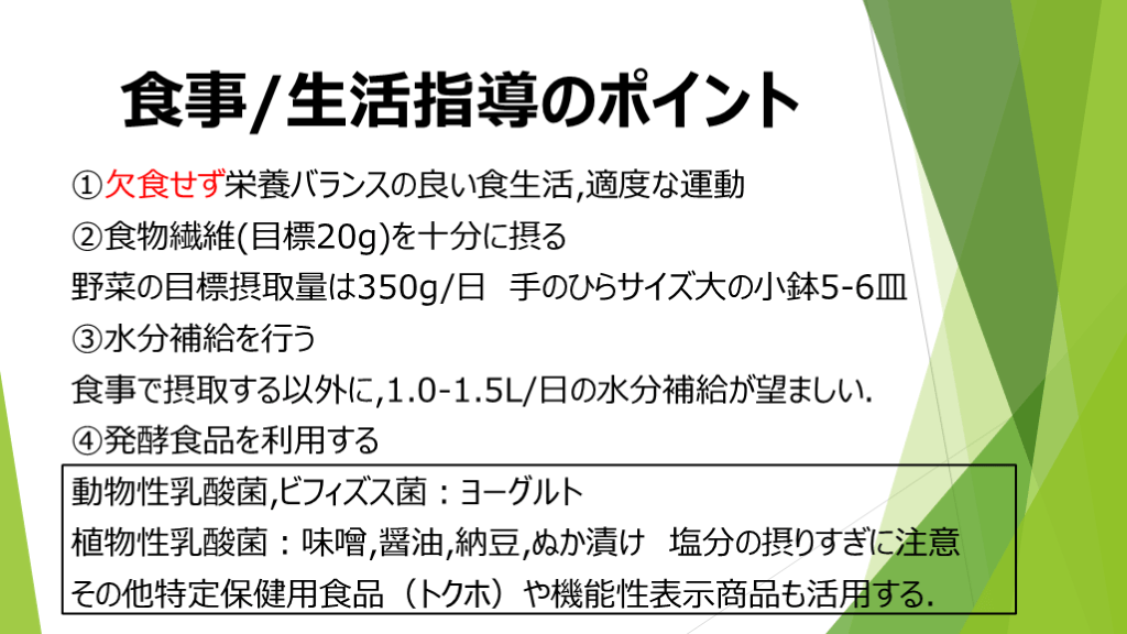 便秘症に対する食事と生活指導