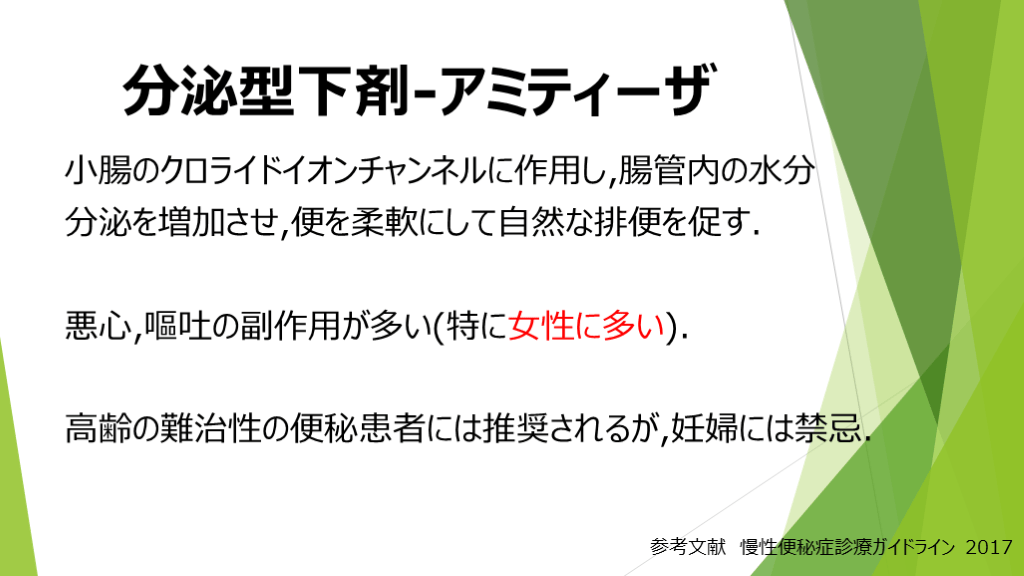 #16. 分泌型下剤-アミティーザ 小腸のクロライドイオンチャンネルに作用し,腸管内の水分