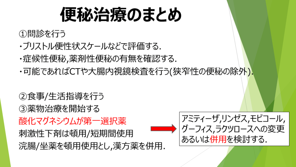 便秘治療の重要なポイントとまとめ