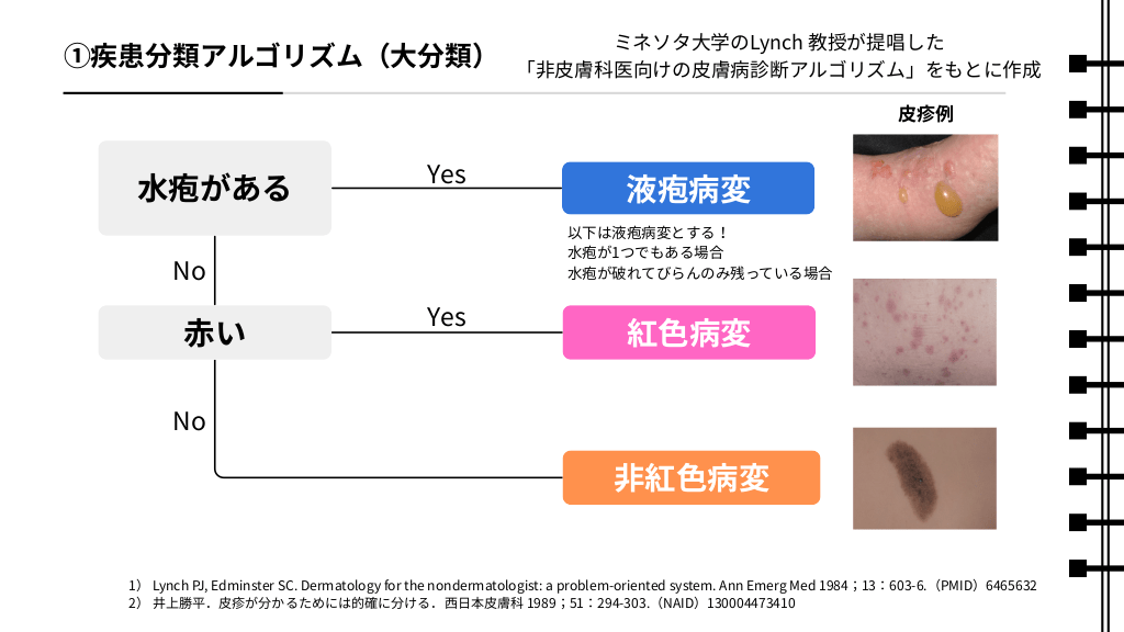 まず,見た目(水疱の有無および色)の特徴からなる診断アルゴリズムを提示しています。