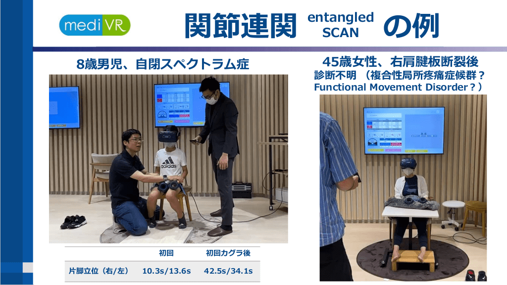 #8. 関節連関 8歳男児、自閉スペクトラム症 entangled SCAN の例 45歳女性、右肩腱板断裂後 診断不明 (複合性局所疼痛症候群? Functional Movement Disorder?) 片脚立位(右/左) 初回 初回カグラ後 10.3s/13.6s 42.5s/34.1s