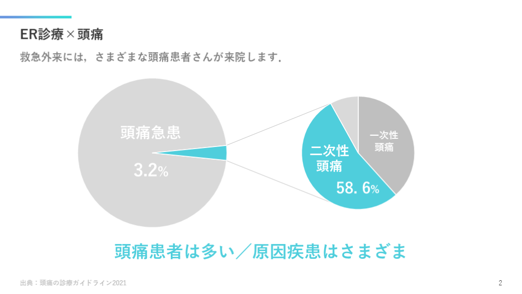 #3. ER診療×頭痛 救急外来には,さまざまな頭痛患者さんが来院します. 出典:頭痛の診療ガイドライン2021 2 頭痛急患