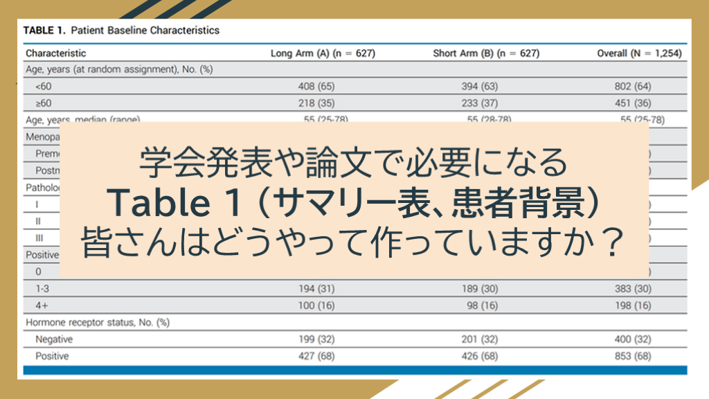 Table 1 を爆速で作る (サマリー表、患者背景) #2.