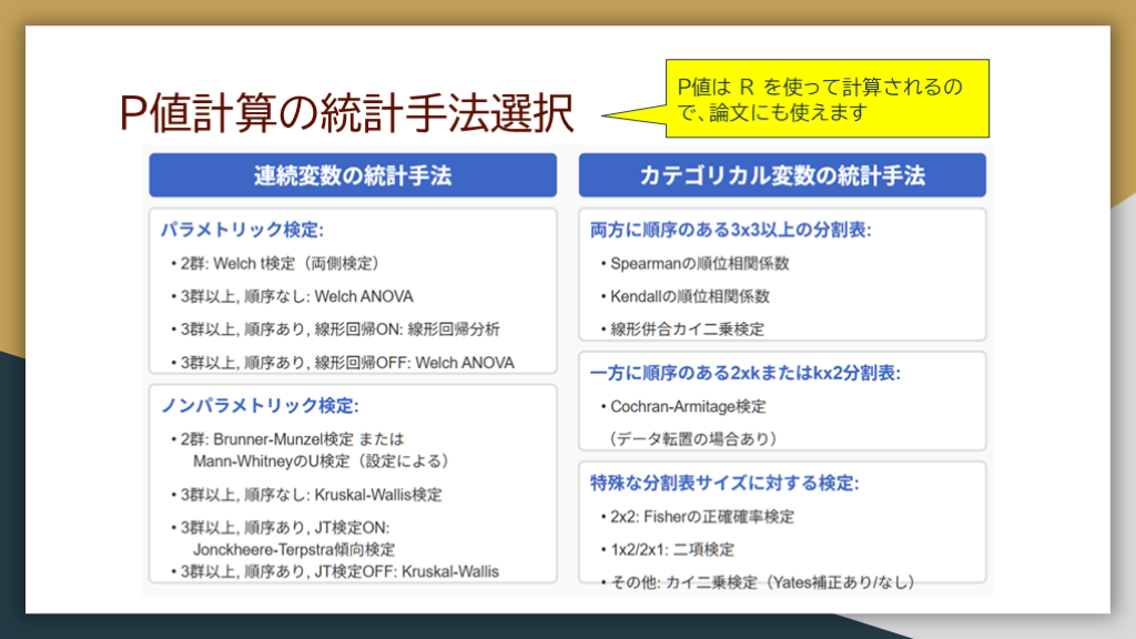 p値も計算されていますが、これはクラウドの R で計算しているとのことです。