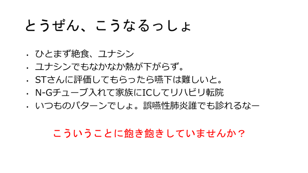 研修医なら誰でも出会う誤嚥性肺炎。絶食+抗菌薬のルーチンの対応をしていませんか?