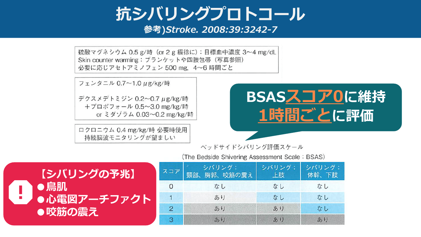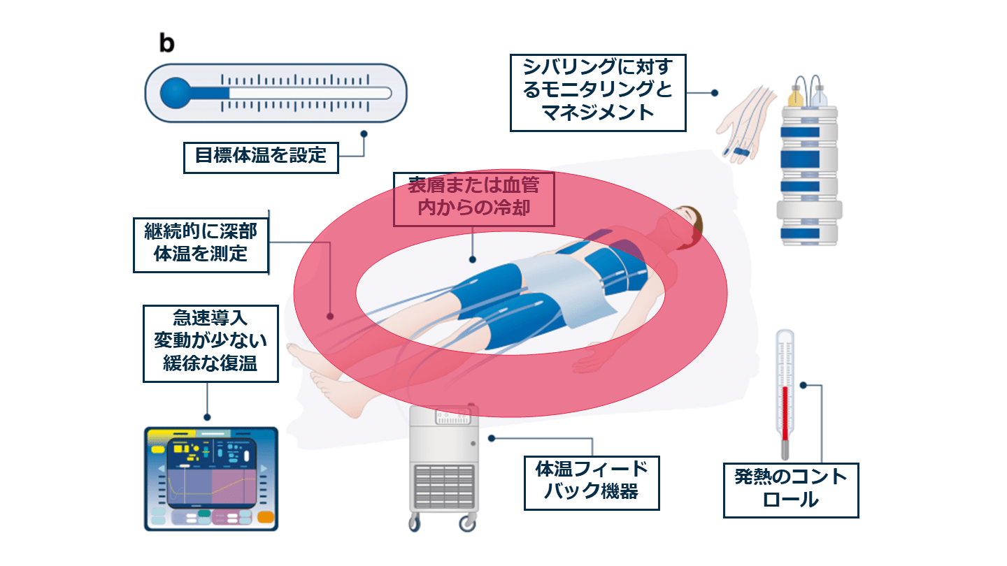 緩徐な復温 表層または血管内からの冷却 継続的に深部体温を測定 発熱のコントロール