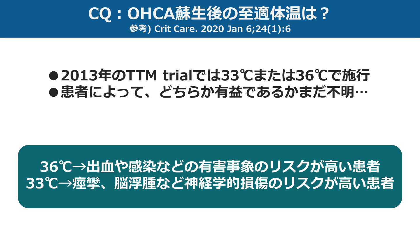 参考) Crit Care. 2020 Jan 6;24(1):6 ●2013年のTTM trialでは33℃または36℃で施行