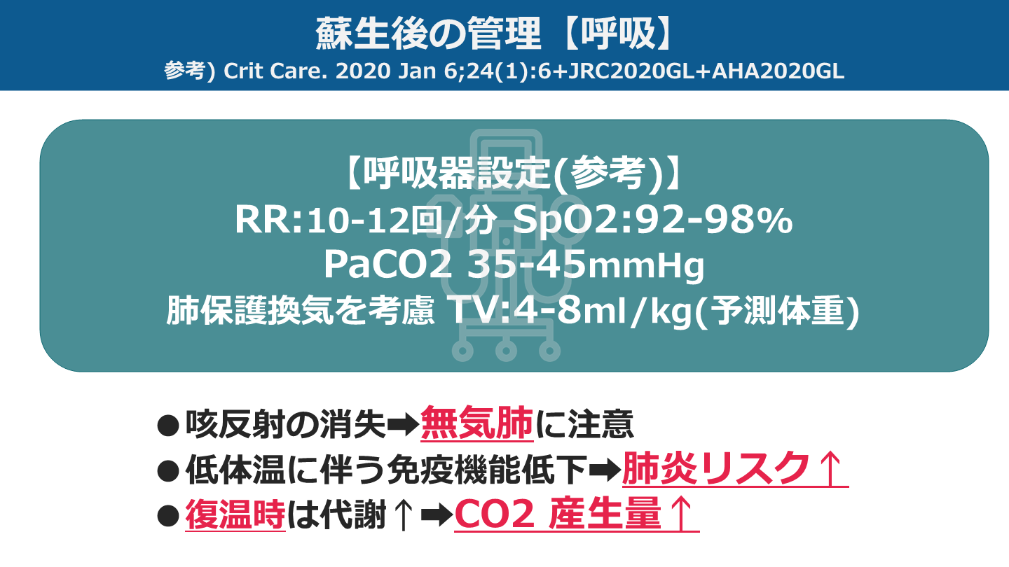 参考) Crit Care. 2020 Jan 6;24(1):6+JRC2020GL+AHA2020GL 【呼吸器設定(参考)】
