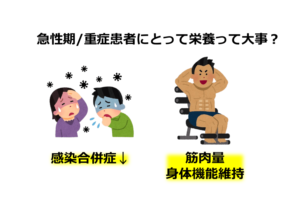 #5. 急性期/重症患者にとって栄養って⼤事︖ 感染合併症↓ 筋⾁量 ⾝体機能維持