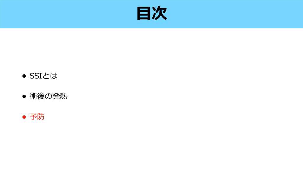 目 次 • SSIとは • 術後の発熱 • 予防 #19.