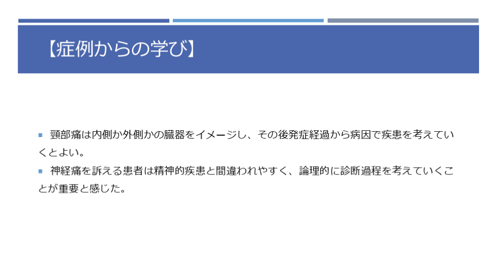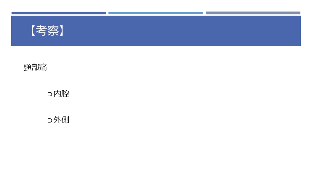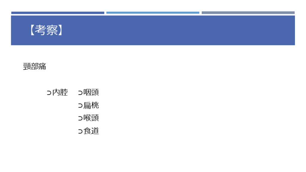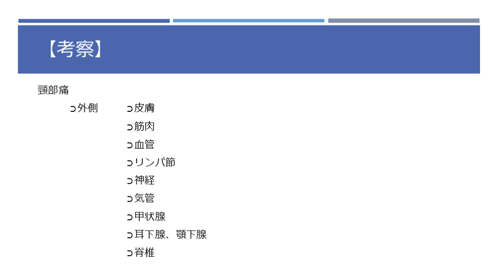 #43. 頸部痛は内側か外側かの臓器をイメージし、その後発症経過から病因で疾患を考えてい